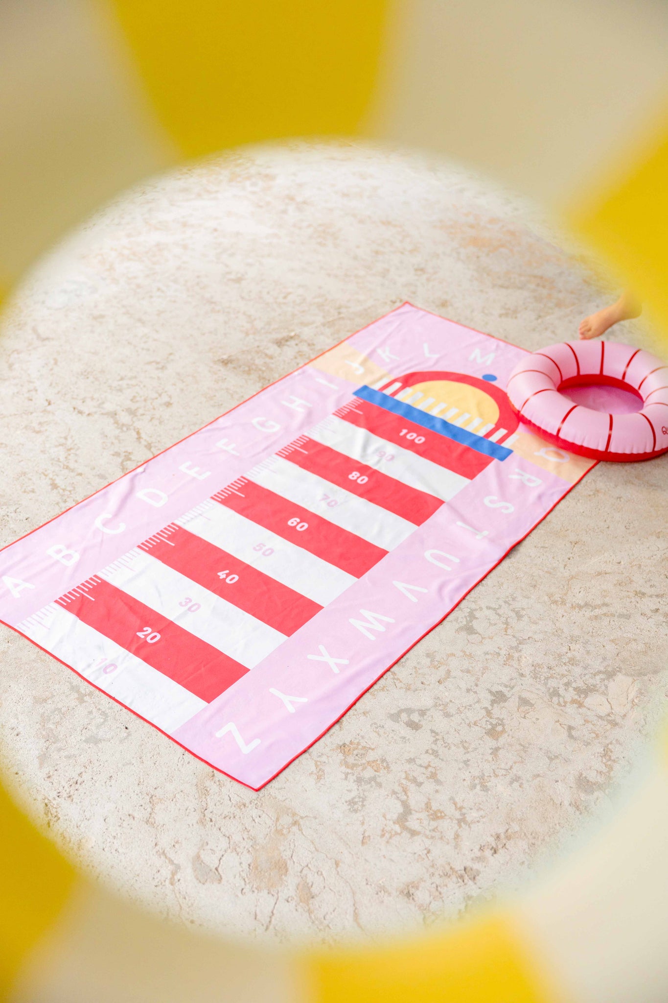 Made from 100% microfibre which is quick dry, super compact and sand resistant.