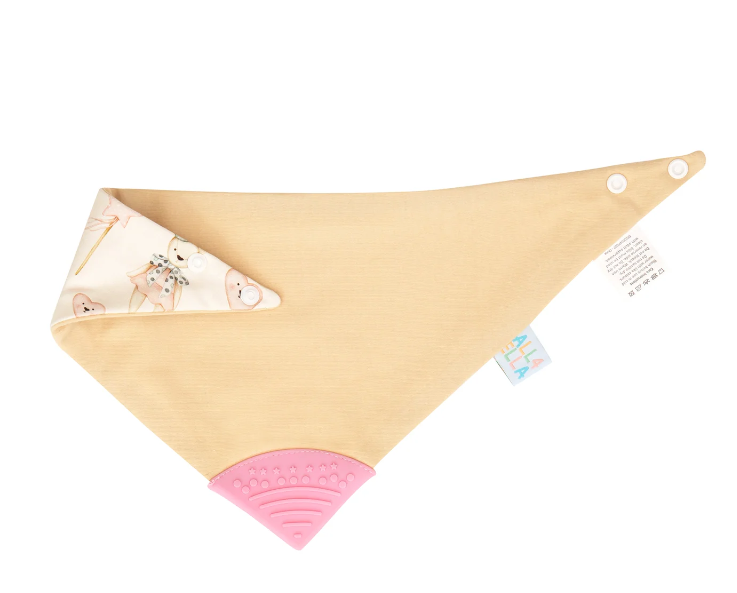 Both fashionable and functional, our Ice Creams & Teddy Reversible Teether Bandana Bib is designed to absorb dribbles while providing relief for teething babies.