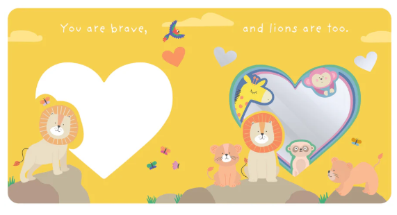 Graduating die-cuts lead to a mirror on the final spread that reveal the little reader’s own adorable face, inviting them to become part of the story.