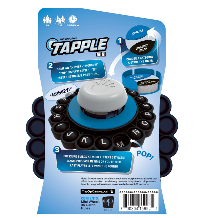 Small in size but big in fun, Tapple® Mini is the perfect game to play on the go or bring on your next trip.