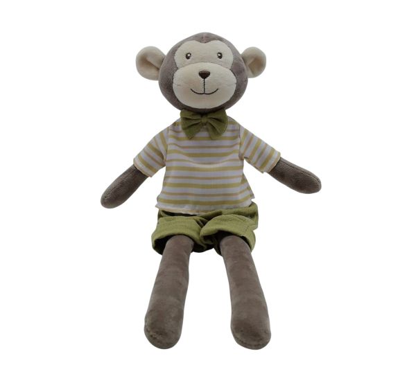 Designed with love in Australia! Milo the Monkey is here in a sunshine-inspired outfit. Milo returns in a soft yellow-striped tee, mossy green shorts and his signature bowtie. He brings bright smiles and a playful spirit to every cuddle.