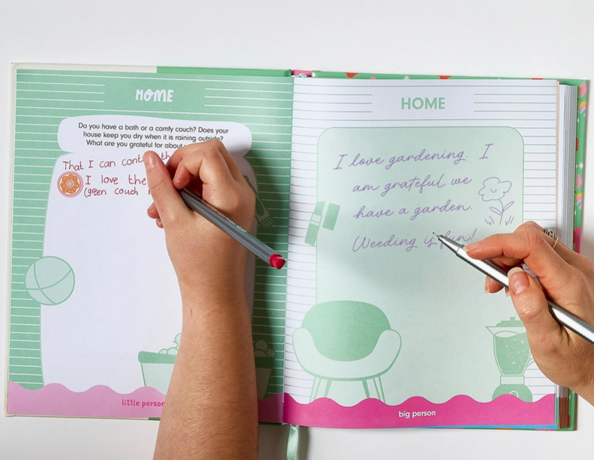 A journal for a big person and a little person to practice gratitude together.