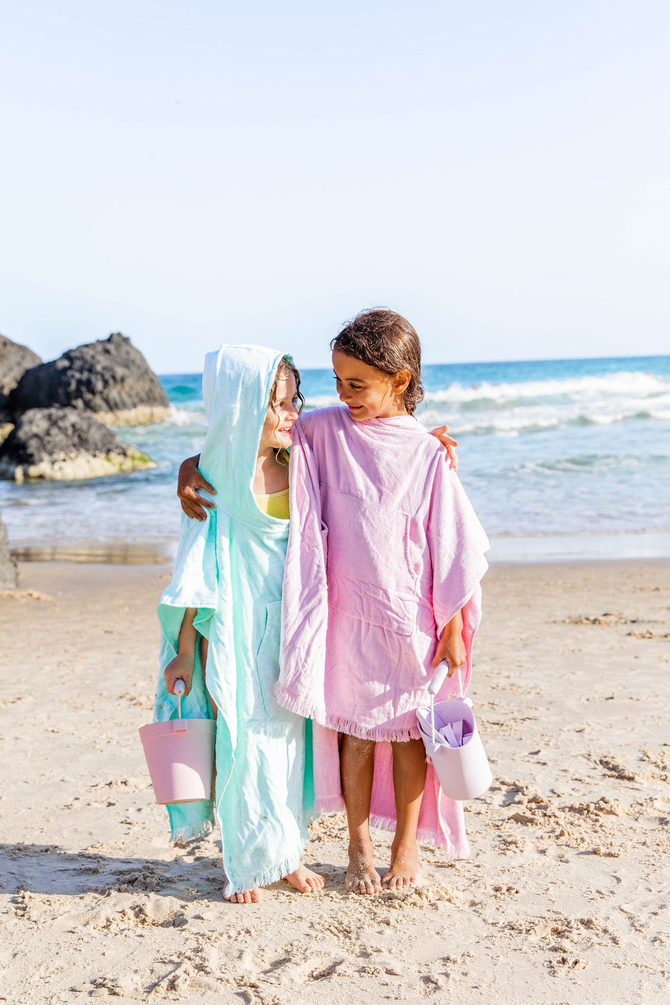 These towels have been carefully designed, by us here in australia, and feature open sides, a fine frayed edge, a generous hood and large front pocket.